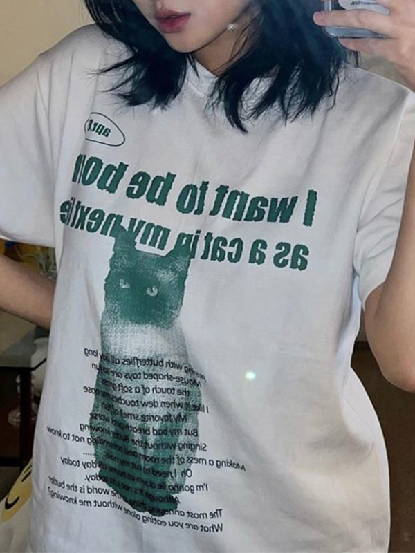 Cat Letter Print Oversized Short Sleeve Tee