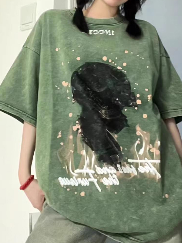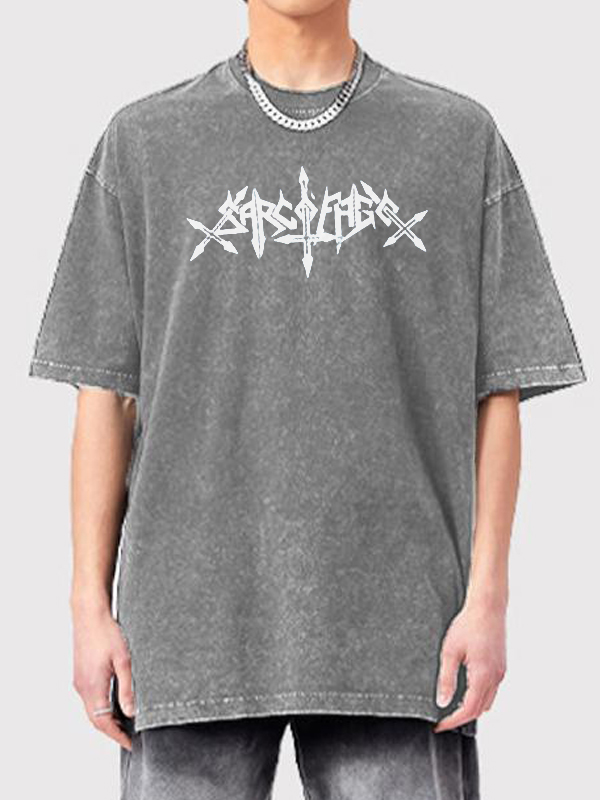 Men’S Dark Style Print Washed Oversized Short Sleeve Tee