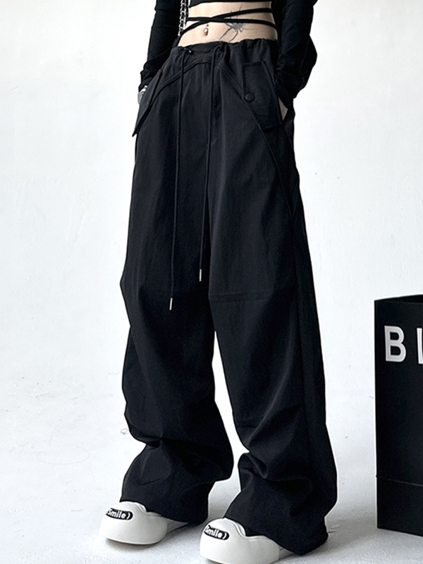Solid Color Parachute Cargo Pants