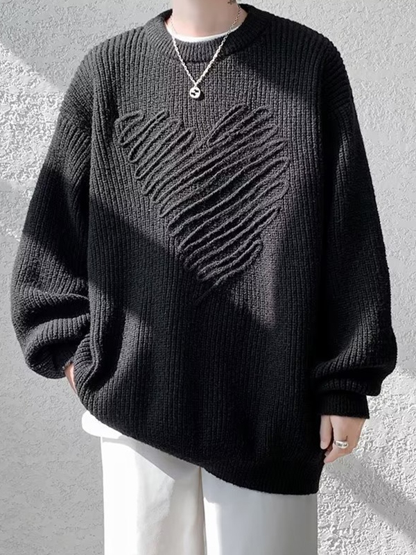 Men’s Three-dimensional Heart Decor Crew Neck Sweater