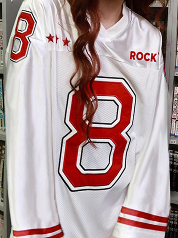 V Neck Star Digital Print Oversized Long Sleeve Tee