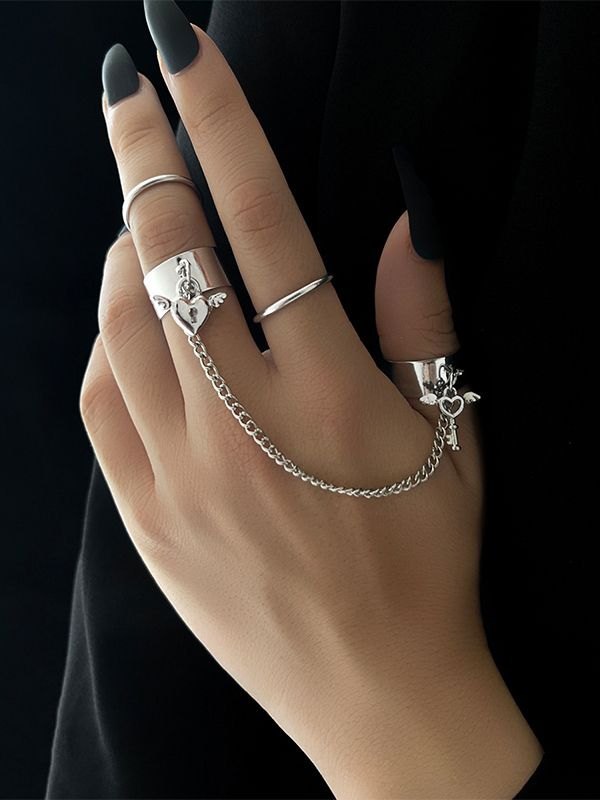 Heart Key Pendant Cuff Ring Set