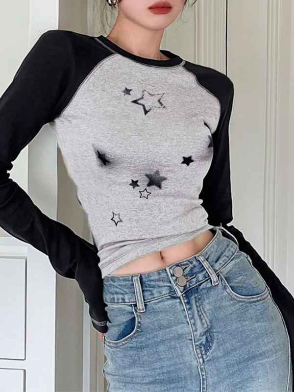 Star Print Raglan Slim Long Sleeve Tee