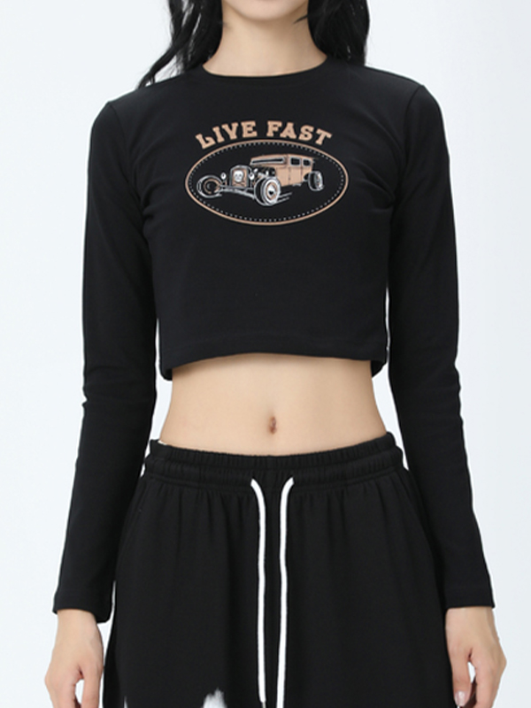 Lettering Printed Long Sleeve Tee