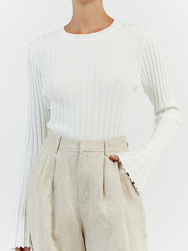 Solid Ribbed Crew Neck Long Sleeve Knit