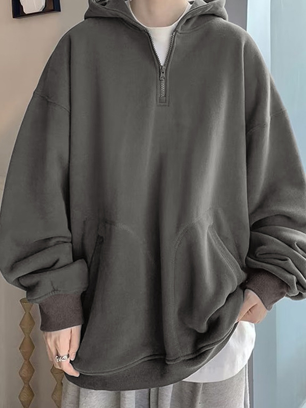 Men’s Fleece Solid Color Half Zip Oversized Hoodie