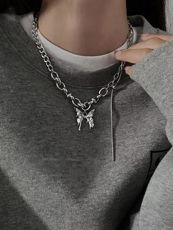 Butterfly Pendant Link Chain Necklace