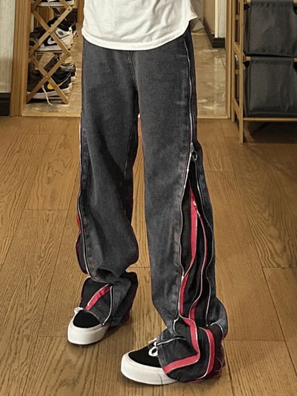 Contrast Color Side Double Zipper Boyfriend Jeans