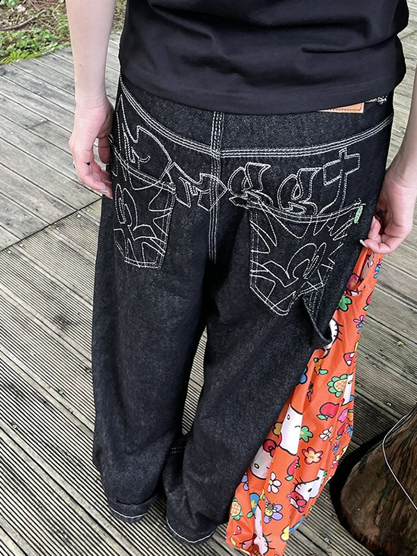 American Retro Cat Whiskers Straight Loose Jeans