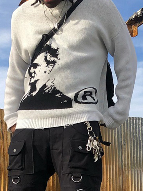 Contrast Color Splice Trumpet Sleeve Slim Sweater