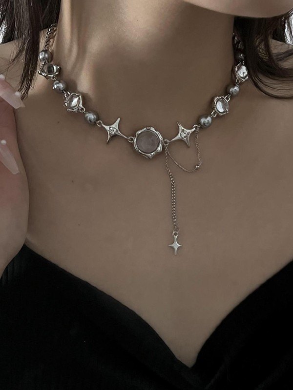 Star Charm Beads Faux Pearl Necklace