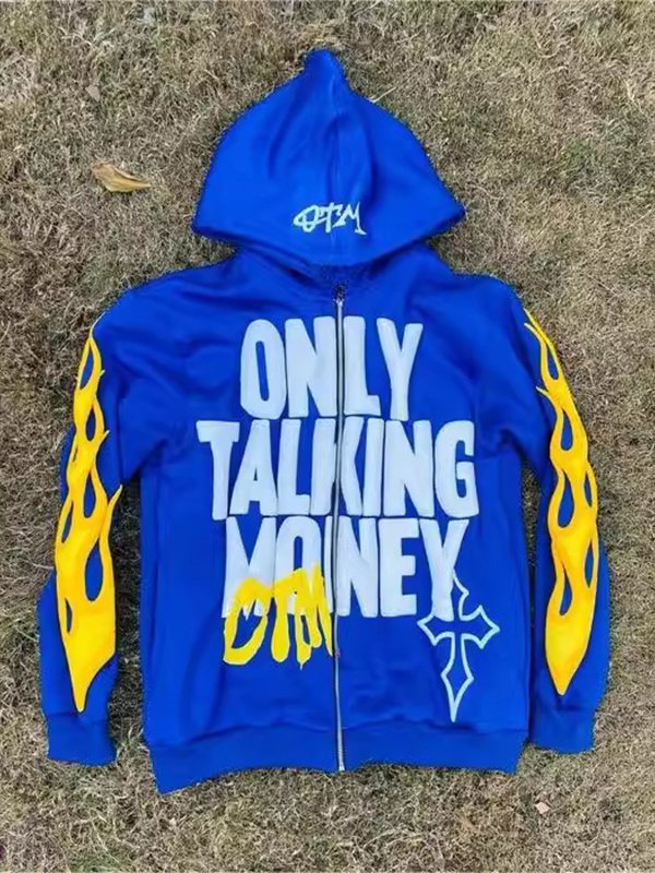 Men’s Foam Letters Flame Print Oversized Hoodie