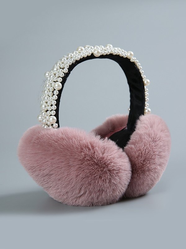 Faux Pearl Embellished Fuzzy Earmuffs