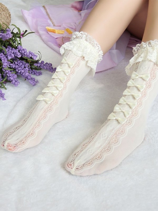 Bow Embellish Lace Socks