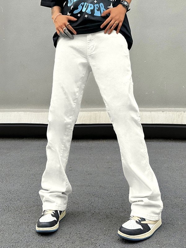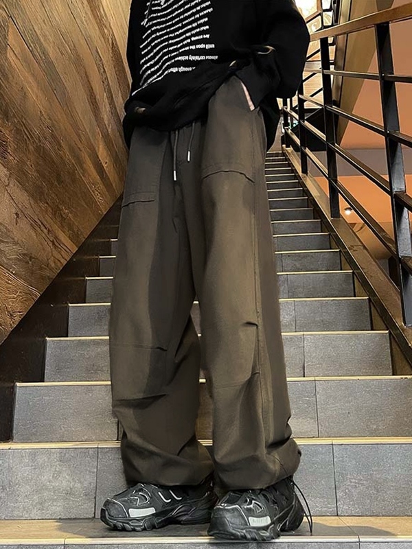 Men’s Solid Splice Bound Feet Wide Leg Pants