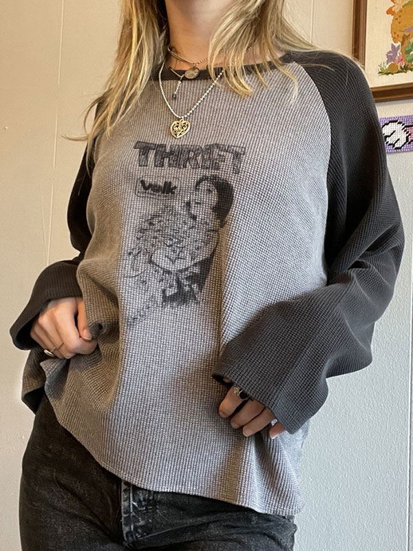 Waffle Portrait Print Raglan Oversized Long Sleeve Tee