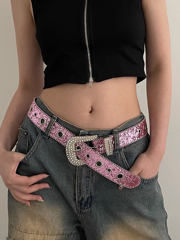 Y2K Sequin Rhinestone Buckle Belt