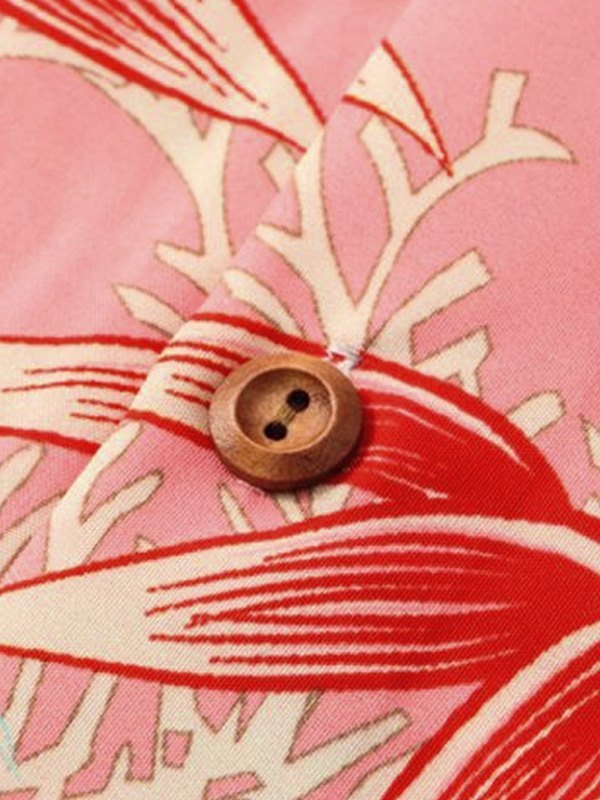 Description: Printed shirts are a must-have to your summer wardrobe. These shirts for mens cut to a flattering silhouette, it has retro-inspired crane print throughout the body, and fasten with button fly at front.