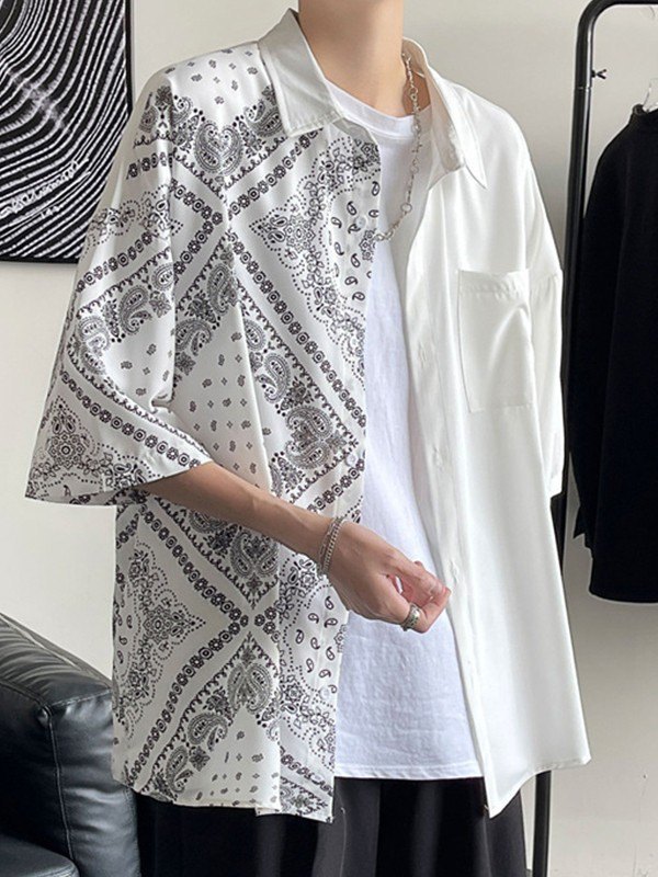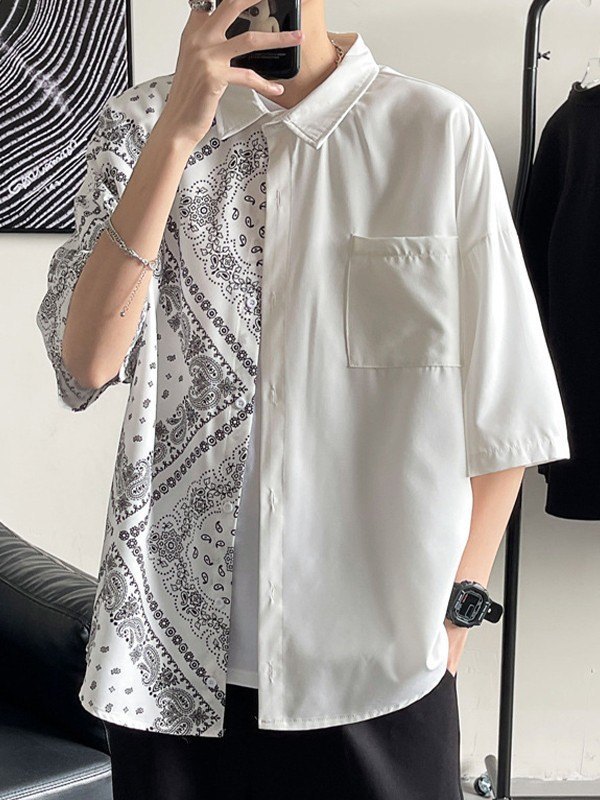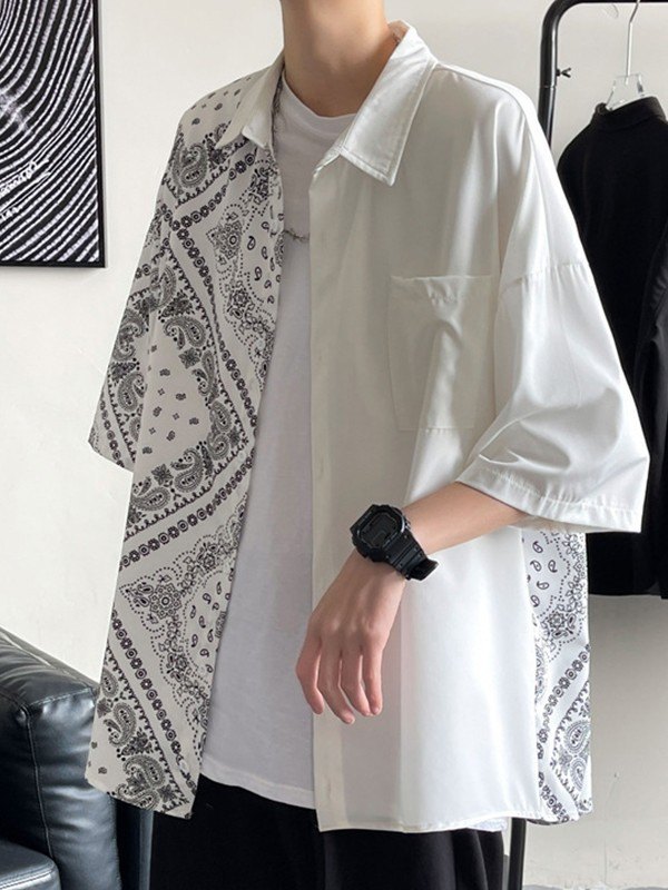 Men’s Patchwork Paisley Print Pocket Shirt