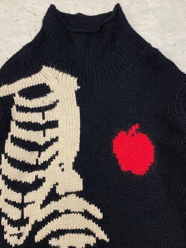 Description: Feel warm and cosy in winter season with these chic jumpers. Cuts to a relax silhouette, features dropped long sleeves, with skeleton bones and an apple jacquard detail to the front.