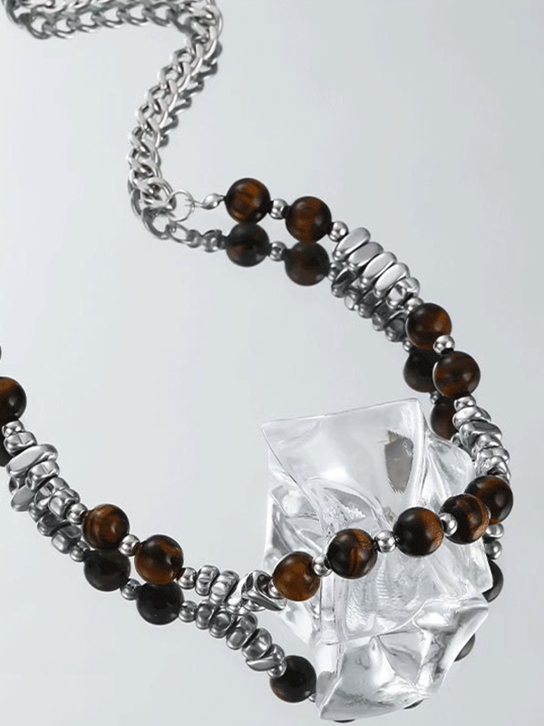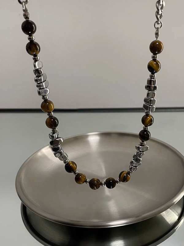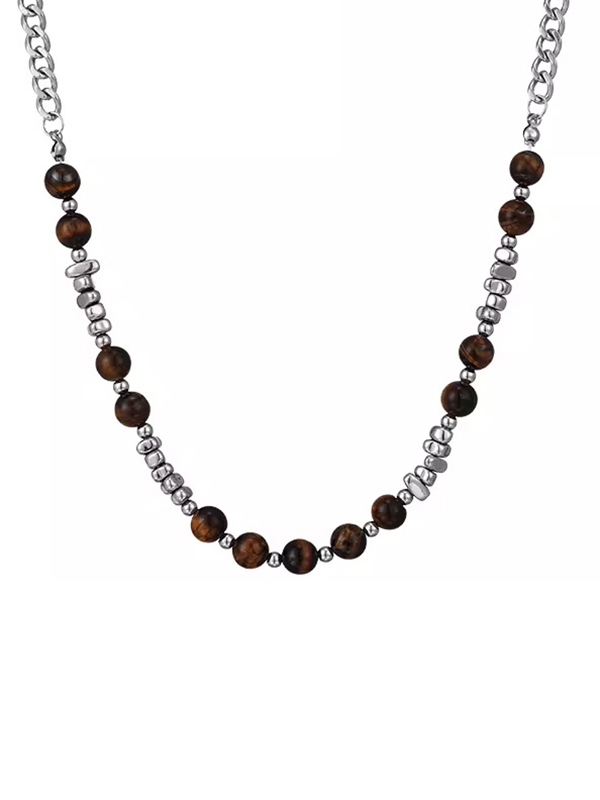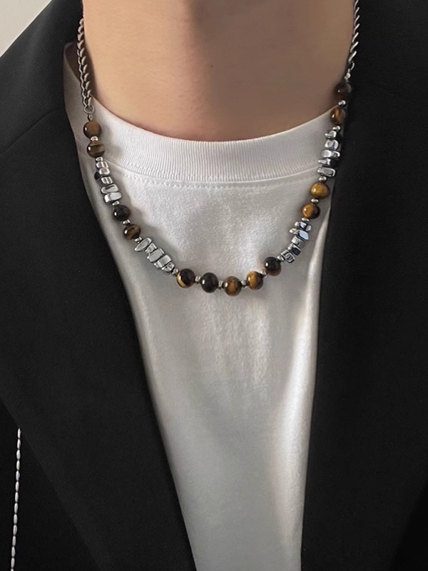Men’s Tiger Eye Stone Irregular Silver Bead Necklace