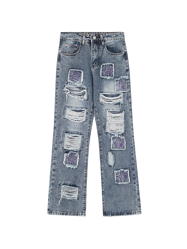 Unique Design: The washed design combined with purple star embroidery offers a unique blend of vintage and streetStyle, making it a standout jeans in any wardrobe.