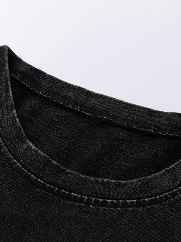 Description: This acid wash top shaped to a relax silhouette, made from cotton fabric, with rock band pattern featuring, take this perfect vest to to the coming music festivals.