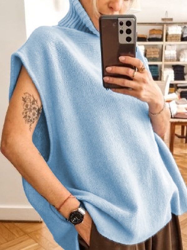 Solid High Neck Loose Sweater Vest