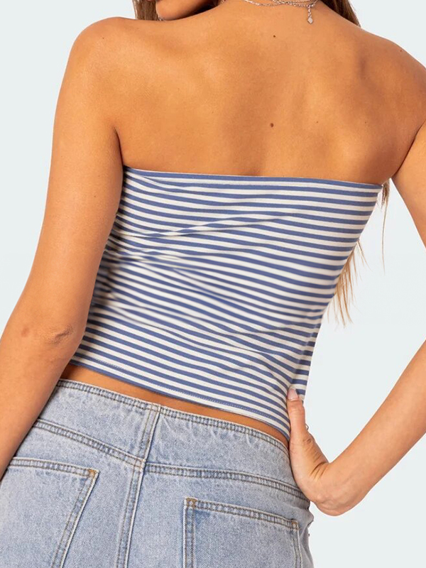 Striped Slim Fit Short Navel Baring Bandeau Top