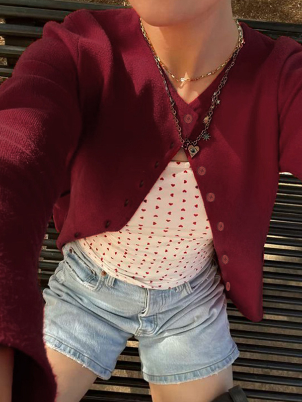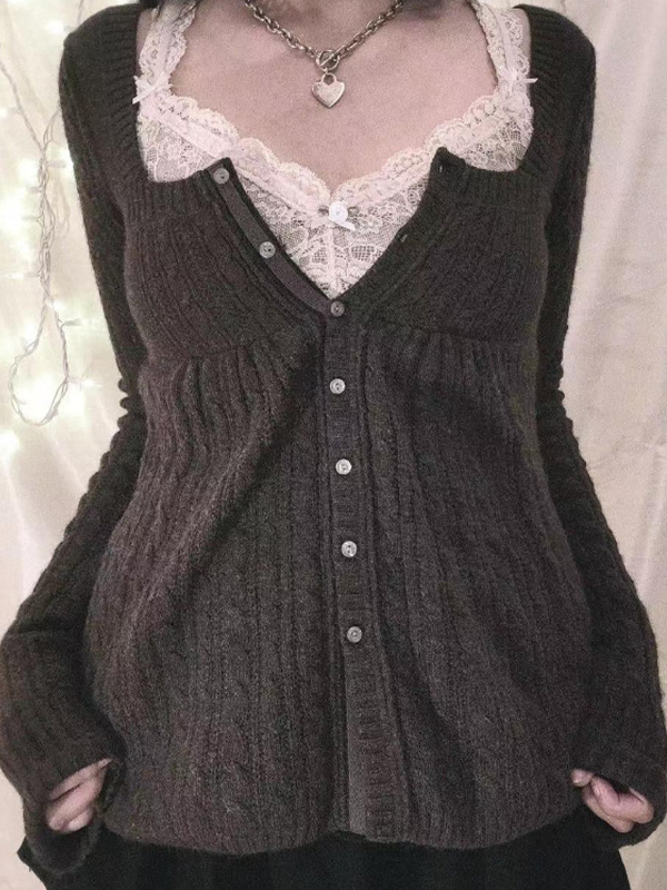 Star Embroidered Print Cable Knit V Neck Cardigan