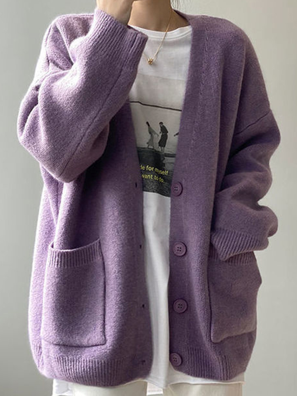 Mohair Solid Lantern Sleeve Baggy Cardigan