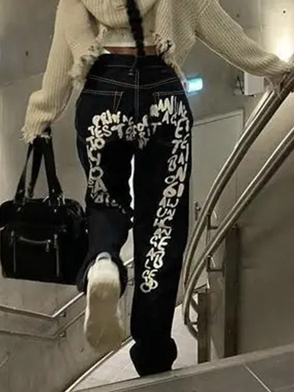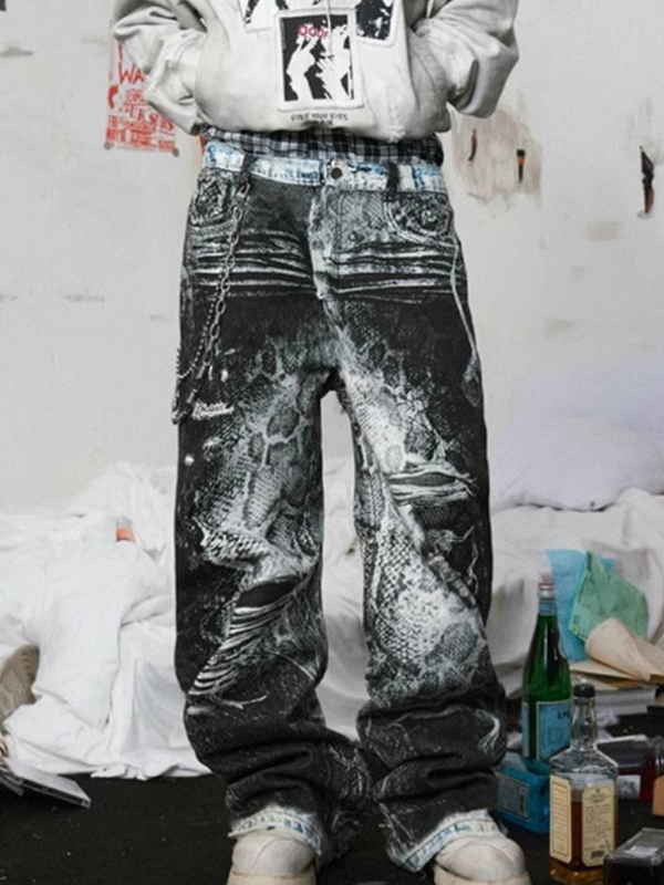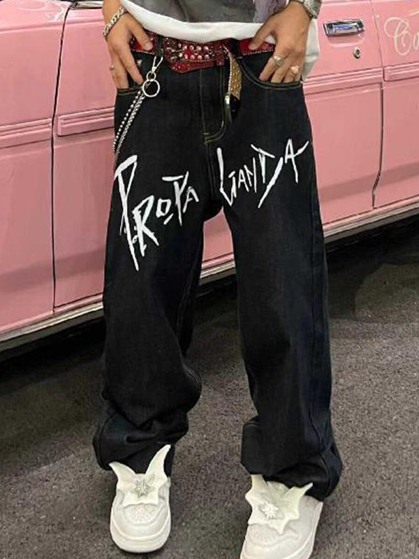 Men’s Cross Badge Rhinestone Raglan Loose Jeans