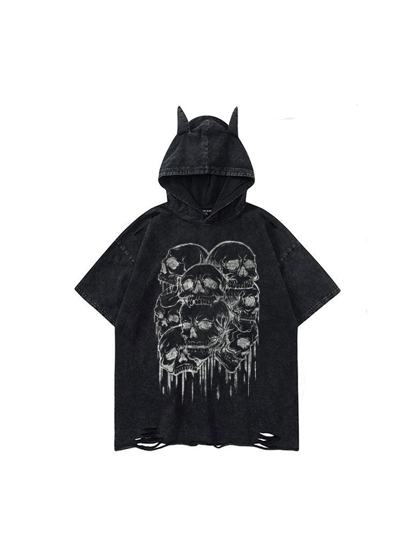 Little Devil Dark Style Skull Print Short Sleeves