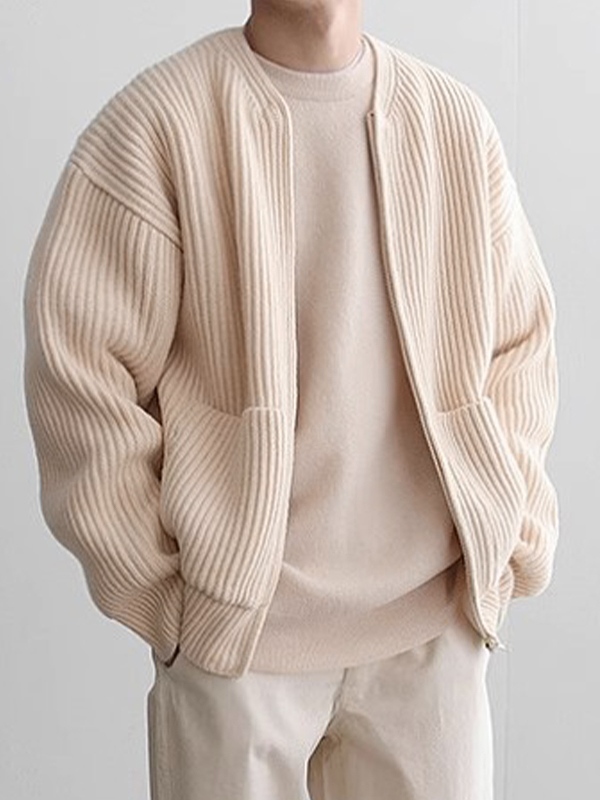 Men’s Solid Color Rib Zip Up Cardigan Sweater