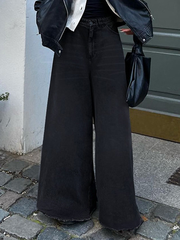 Washed Denim Raw Edge Pockets Denim Shorts