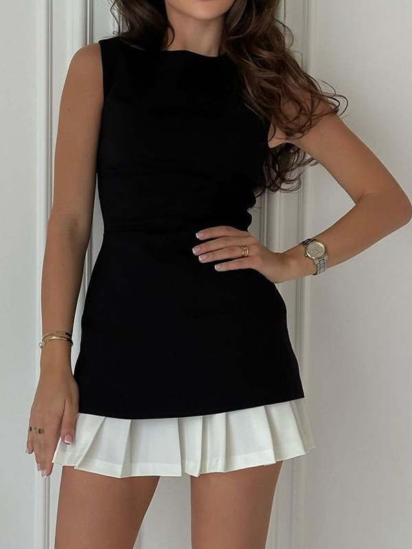 Splicing High Collar Tank Top