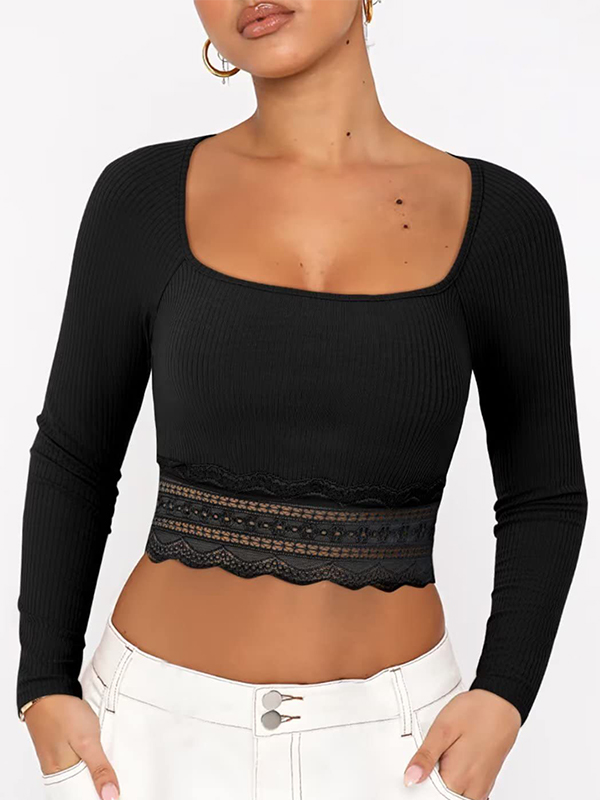 Lace Paneling Black Slim Fit Cami Top