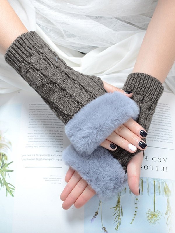Faux Fur Trim Cable Knit Fingerless Gloves